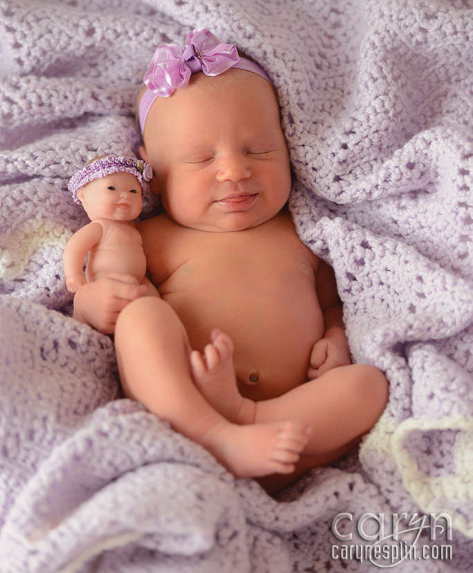 Not many newborns love the camera like Callie does. She was so patient and sweet, it was a blast to photograph her! What a doll baby with such perfect features. She is already a great poser, at only four days old. With a newborn you are lucky to get this many different setups in a few hours and a few smiles are a nice bonus. It usually takes a few sessions to catch them asleep and awake and not crying. Plus you have to account for nursing time, spitting, pooping and peeing cleanups and backdrops changes. The styling and posing takes longer too. But she was a champ…so darling and cooperative! What a great temperament, but that comes from her parents.. two of the nicest people on the planet.