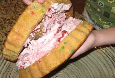 3. Soften the ice cream and mix in any goodies you want, just like they do at Cold Stone. We just went with the Blue Bunny Double Strawberry. Any Super Walmart carries several flavors that are Low Fat or Fat Free, and No Sugar Added. This is creamy, sweet ice cream that is very low in calories.