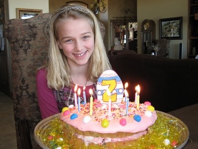8. Add the colored sprinkles and malted eggs on the frosting. You can wait and add any candles later. Cover with plastic wrap and freese until ready to eat.
