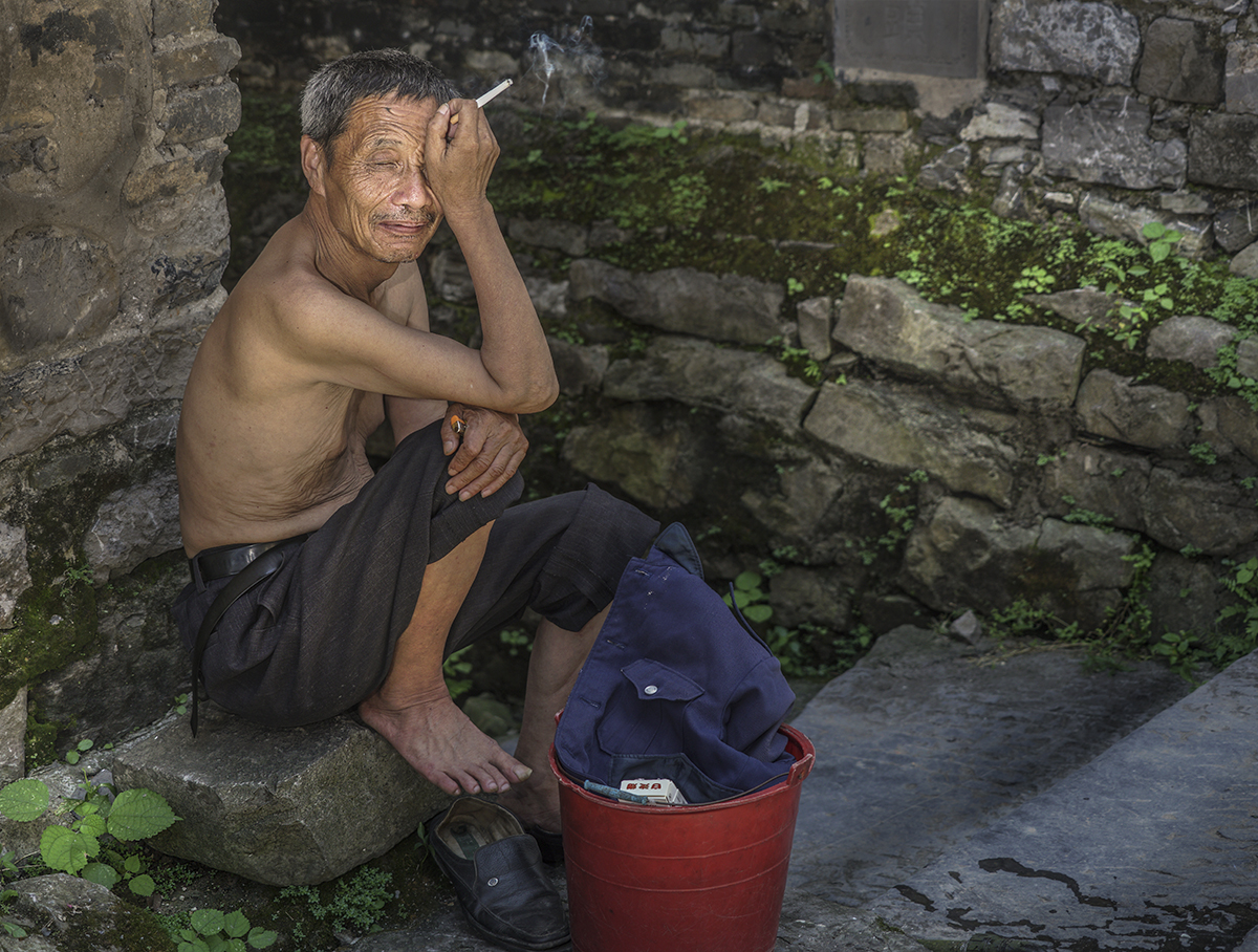 This man sat near one of the many narrow alleyways down to the Li River. He was offering to sell cigarettes to anyone who walked his way.